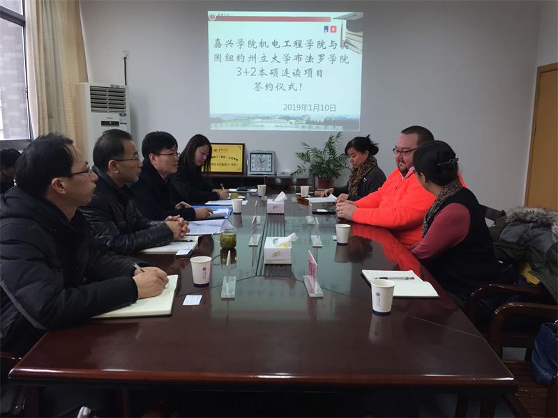 2019年1月10日, 美国纽约州立大学布法罗学院国际处处长及教务长助理Robert Summers和教育学院张晶博士到嘉兴学院平湖师范学院及机电工程学院进行友好访问。