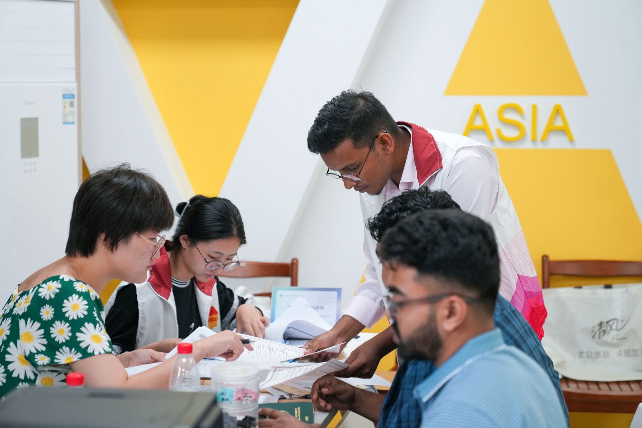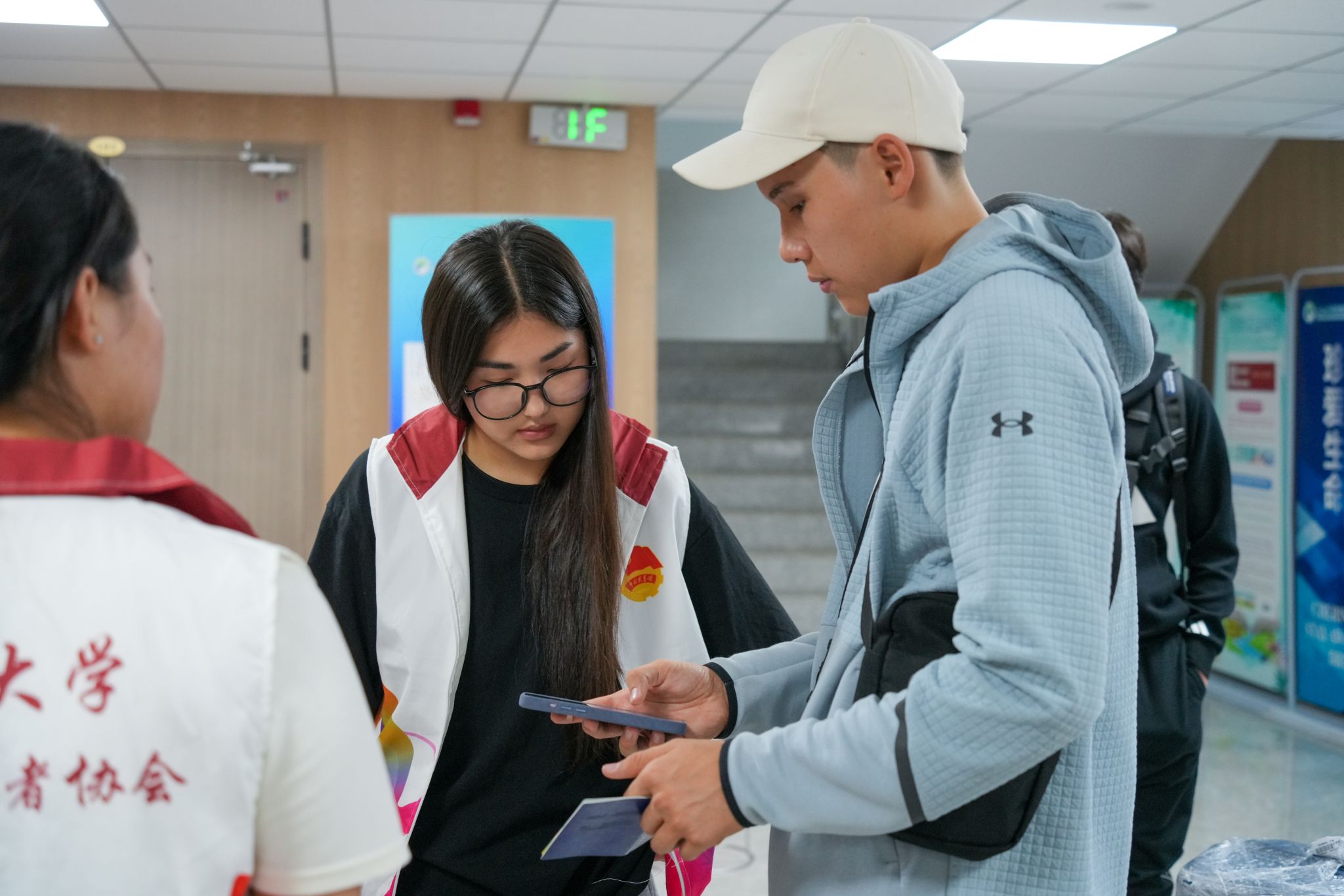 国际学生老生同样以志愿者身份积极参与此次迎新。从校园入口的初次问候与行李搬运,到报到大厅内的高效协助,再到沿途的细致指引,他们的身影贯穿始终,将志愿服务化为新生在嘉兴大学温暖的“第一站”。