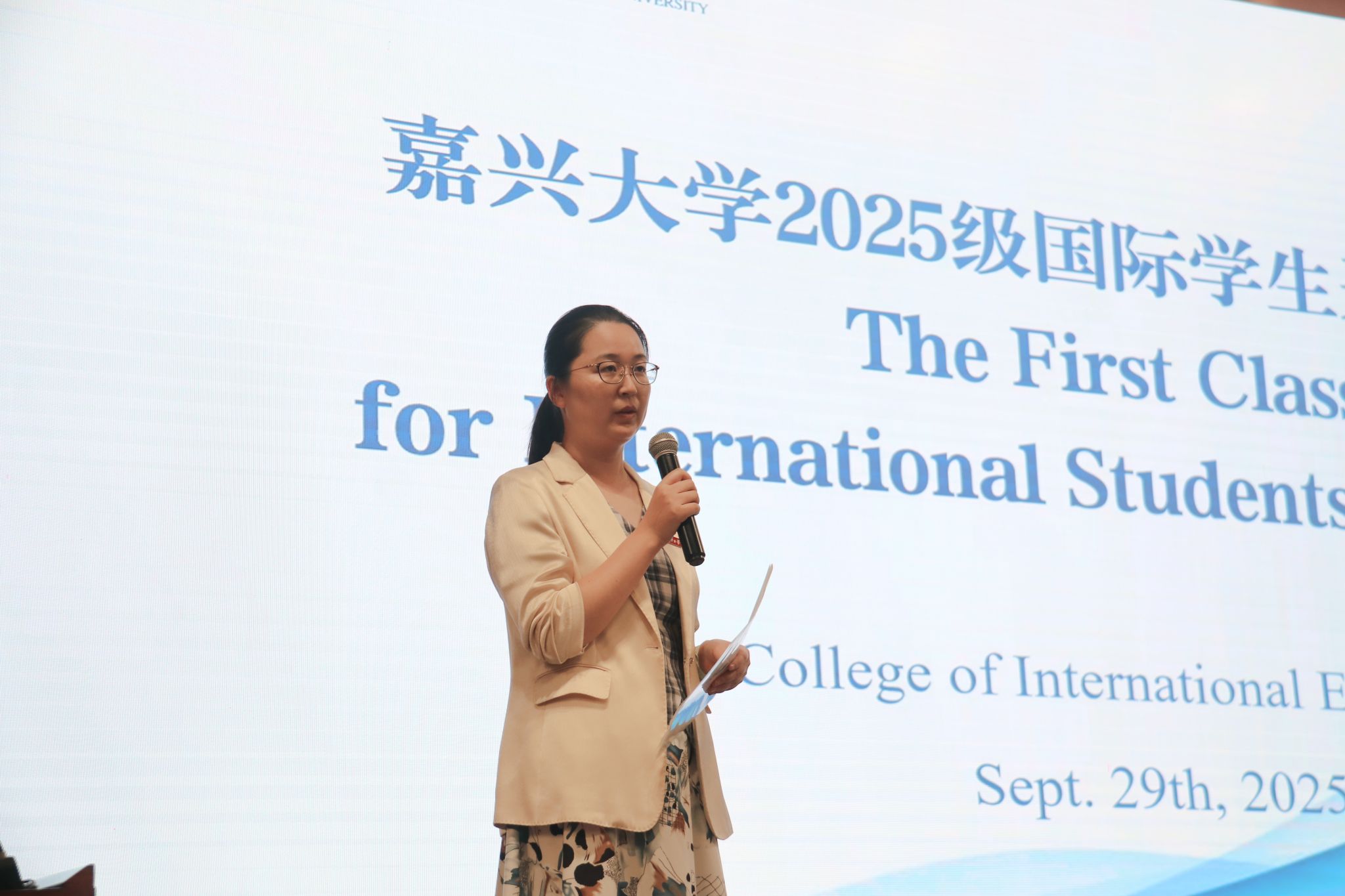 讲座伊始,国际教育学院副院长刘韵超发表讲话。她代表学院向来自世界各地的新同学表示热烈欢迎,并强调,遵守中国的法律法规和学校的各项规章制度,是每位国际学生在华学习、生活的基本前提。她希望同学们能够尊重当地文化,严守纪律要求,做到知法、懂法、守法,以积极、理性、负责任的态度融入嘉兴大学的学习生活中,成为中外文明交流互鉴的友好使者。