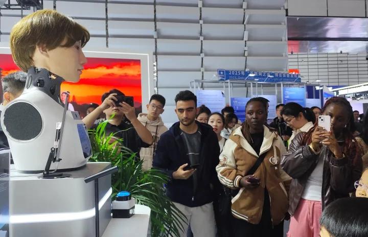 在为期两天的实践活动中,来自20余个国家的国际学生在带队教师的引导下,依次参观了全球领航、模型先锋、智能产业、数智生态、网络安全、数智出行、数字乡村等7个主题展区,深入了解中国在互联网技术创新、数字产业发展、智能生活应用等多方面的最新成果。面对智能机器人、无人驾驶、数字乡村建设等展示内容,学生们纷纷驻足交流、认真记录,切身感受中国数字经济的蓬勃活力与创新魅力。来自哈萨克斯坦的本科生Malik Zhansaya表示:“乌镇不仅是中国互联网的窗口,更让我看到数字化如何改变社会和生活。我希望能把今天的所见所感带回我的国家,与更多人分享中国经验。”