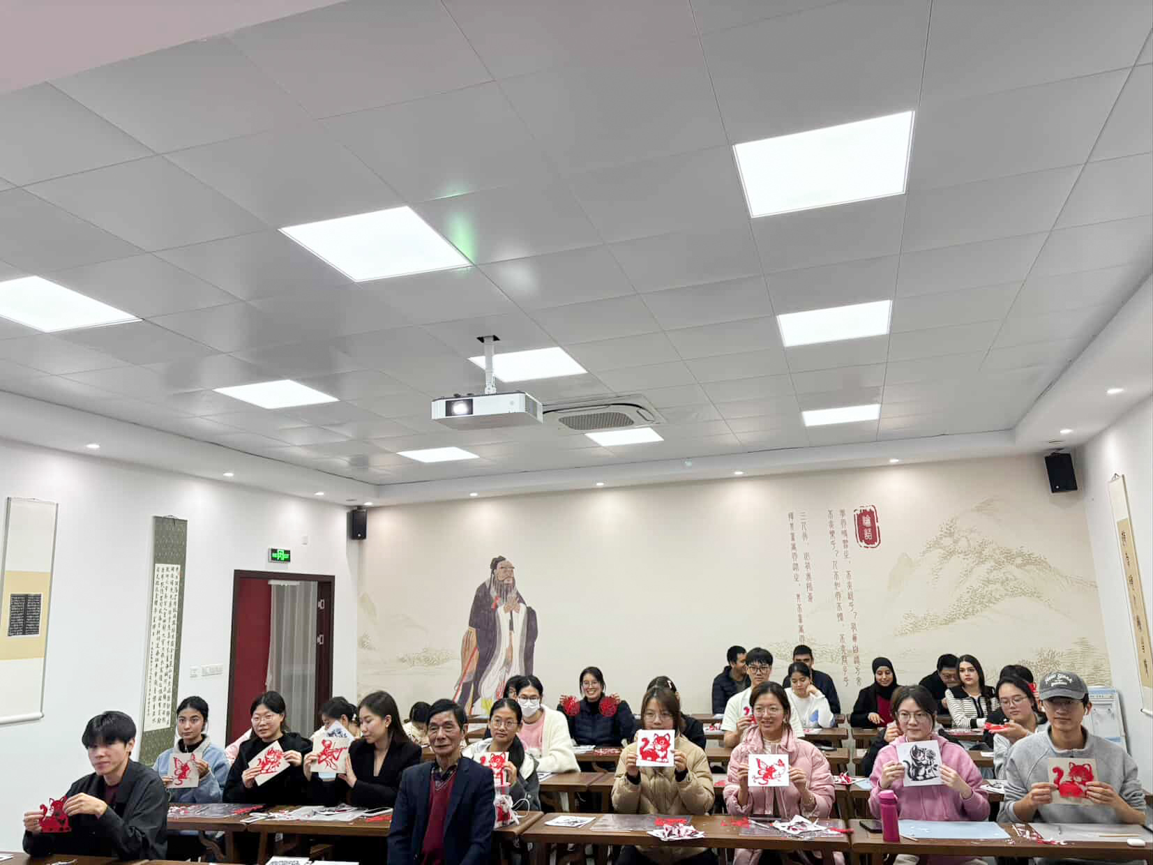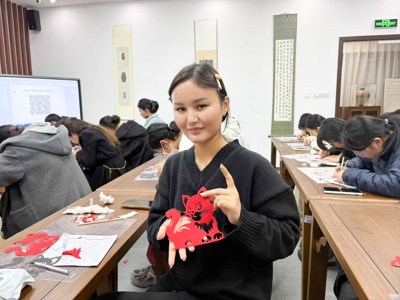 为促进中外文化交流,让国际学生近距离感受中国优秀传统文化的独特魅力,2025年11月17日,我院组织国际学生走进中华传统文化体验中心,开展了一场别开生面的非遗剪纸体验活动。