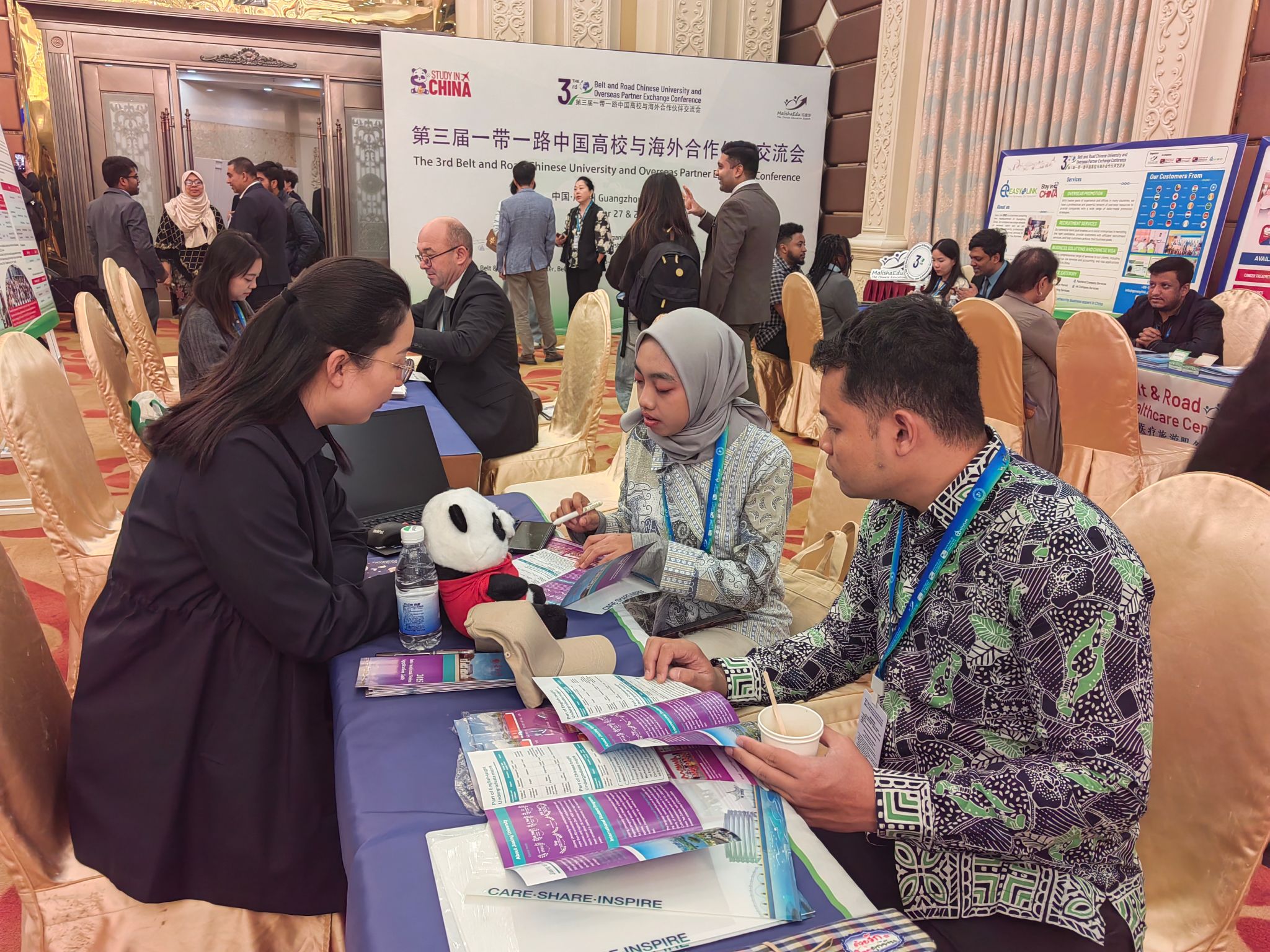 11月27日至28日,刘韵超又带队南下广州,参加了第三届“一带一路中国高校与海外合作伙伴交流会”。此次会议规模盛大,旨在促进中国与“一带一路”沿线国家和地区在文化与教育领域的合作,持续提升“留学中国”品牌的国际影响力。在本次交流会上,嘉兴大学代表充分利用平台机遇,与来自全球30多个国家的60多家当地教育主管部门、中学及汉语培训机构代表进行了高效、密集的对接洽谈。会谈中,我方详细介绍了嘉兴大学面向国际学生的招生专业、富有特色的国际人才培养模式、优越的管理服务以及完善的奖学金体系,并就建立长期稳定的招生宣传合作渠道与多方达成了初步共识。