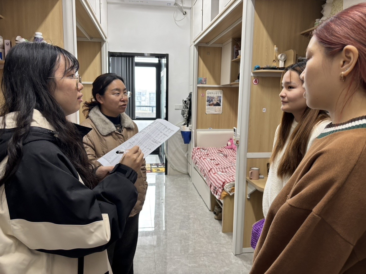 检查过程中,学院领导与同学们亲切交流,传达学院的关怀与问候,鼓励大家科学规划假期生活,深入体验中国传统春节文化。同时,检查组反复叮嘱同学们注意用电、用火及人身财产安全,将安全提示融入温情沟通之中。本次检查重点关注了寒假期间有出国旅行计划的国际学生,特别关心同学们的行程安全与风险防范。检查组成员细心叮嘱大家注意旅途安全,提高反诈防骗意识,在享受异国文化与旅行乐趣的同时,始终将人身与财物安全置于首位,并提醒同学们出行期间保持与家人、学院的定期联系,确保信息畅通。