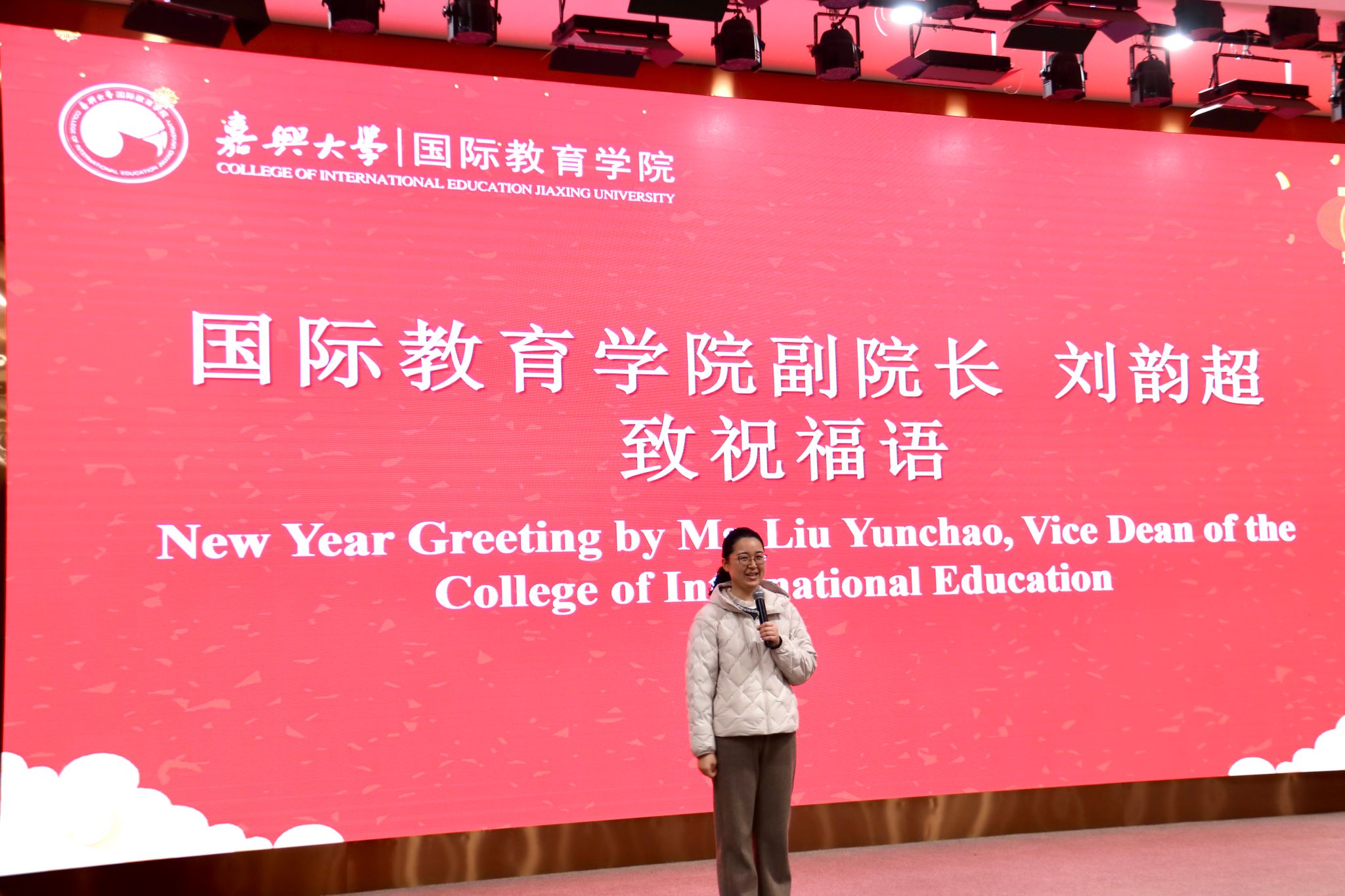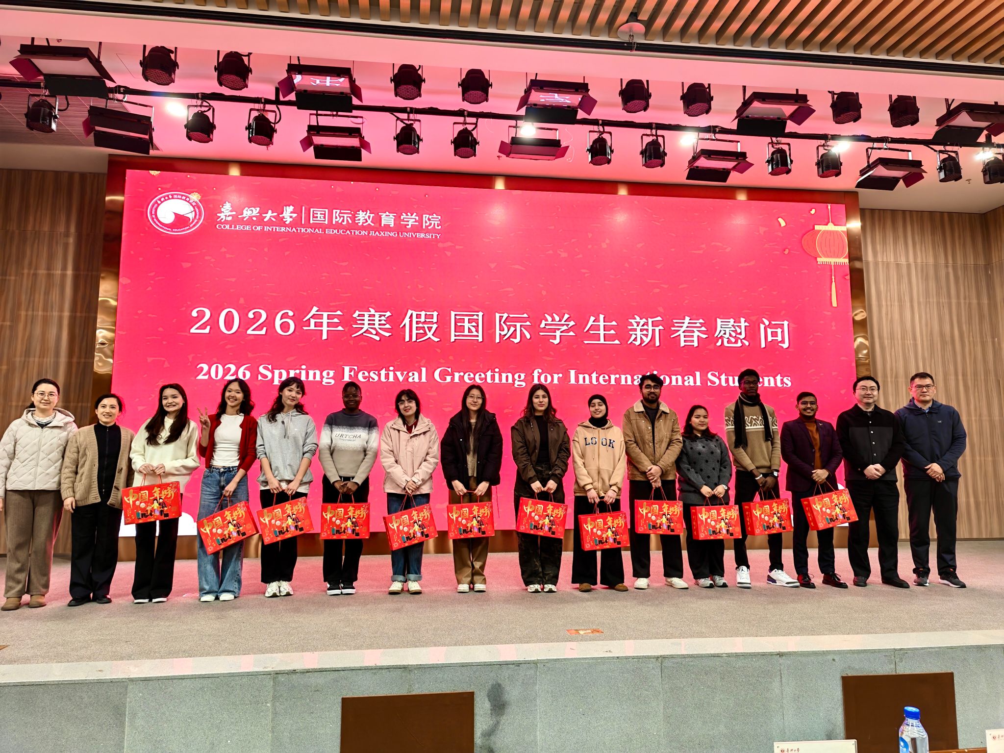 在新春佳节来临之际,为丰富寒假留校国际学生的文化生活,提升安全意识,传递温暖关怀,2月11日,嘉兴市公安局出入境管理支队、经开分局出入境管理大队联合嘉兴大学及“校警驿站”举行了“平安留学,暖‘新’相伴”留学生迎新春特别活动,为留校的各国学子送上节日祝福与暖心陪伴。嘉兴市公安局出入境管理支队副支队长俞立、安全保卫部副部长李联钊、国际教育学院副院长刘韵超以及警官代表、教师代表和全体留校国际学生共同参与了此次活动。