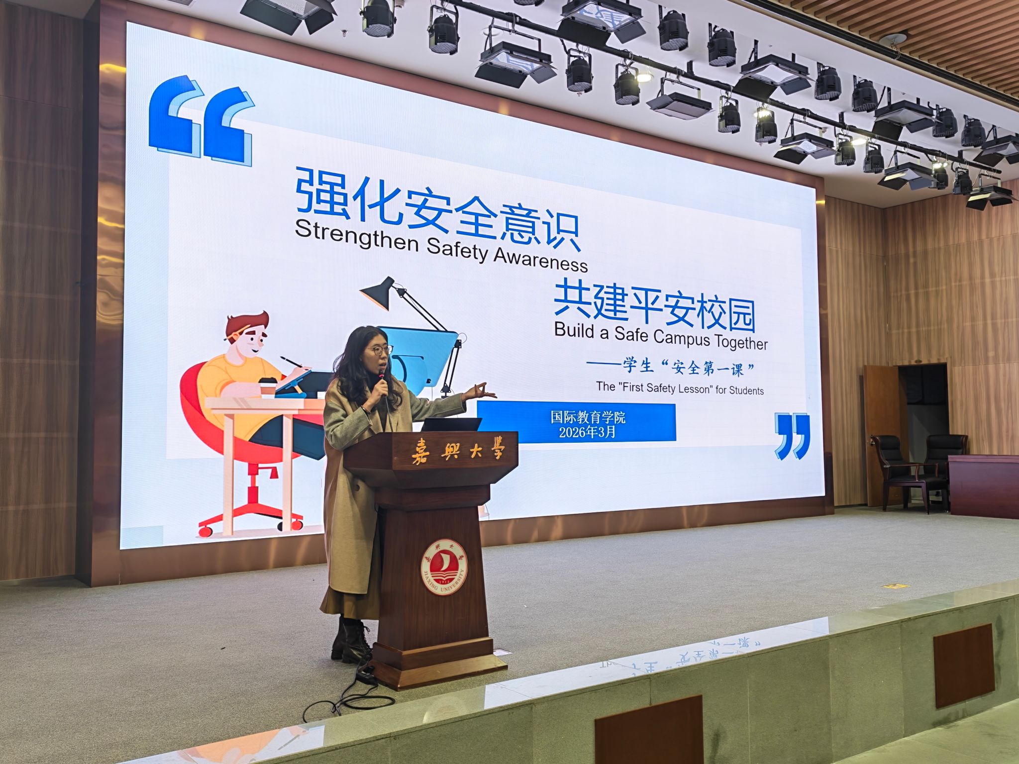 新学期伊始,为进一步提升国际学生的安全意识,铸牢校园安全防线,共建平安校园。3月19日下午,嘉兴大学国际学生开学第一课在图书馆报告厅召开。国际教育学院学工主管李游主持,全体辅导员及全体国际学生参会。